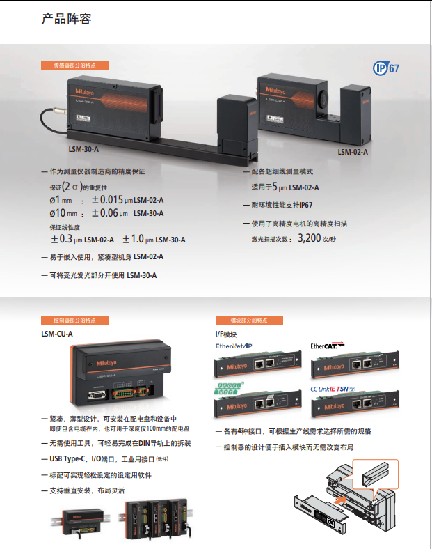 非接触式传感器,实现非接触的高速、高精度测量使用超精密扫描电机并实现超高速测量的产品阵容。它还满足线性精度等高精度的需求。