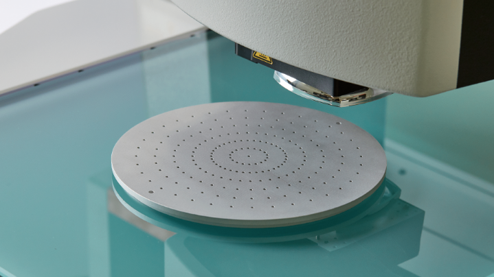 刻蚀机喷淋头(Shower Head)表面密布数千个气体孔,其孔径、坐标位置及平面度直接影响芯片制造良率。传统影像测量需逐孔定位,耗时惊人。