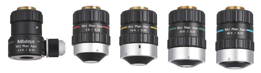 WLI Plan Apo系列核心技术亮点突出,除小型轻量化与长工作距离优势外,还具备高NA(数值孔径)、高分辨力,搭配平场复消色差(Plan Apo)规格,标配干涉条纹调整装置。其中平场复消色差技术可有效校正色差与场曲,确保视场成像清晰精准,从根源减少测量误差,适配半导体、精密光学等高端检测场景。